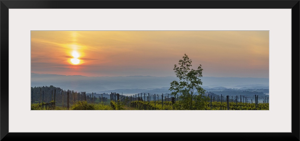 <p>Sunrise over the vineyards of Tuscany. Tuscany, Italy.</p>
