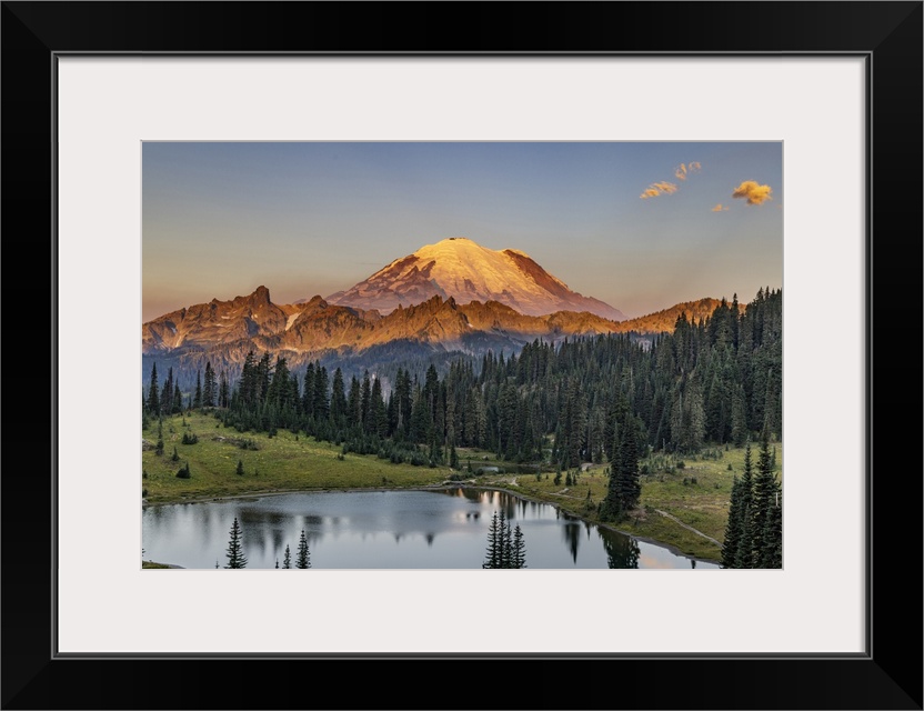 <p>Sunrise over Tipsoo Lake in Mount Rainier National Park, Washington State, USA.</p>