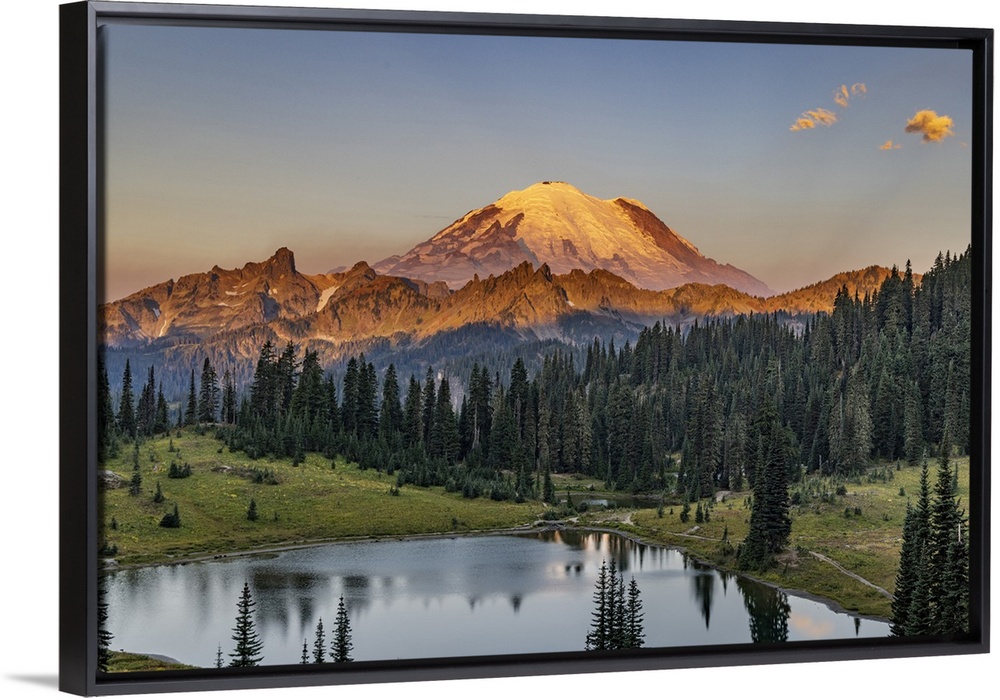 <p>Sunrise over Tipsoo Lake in Mount Rainier National Park, Washington State, USA.</p>