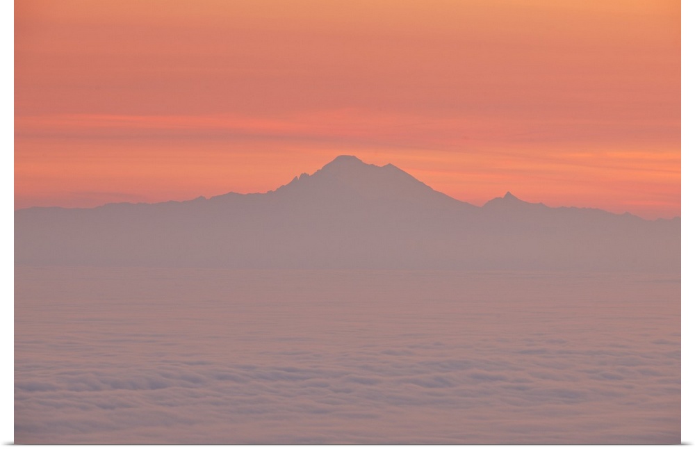 <p>Sunrise skies over the Strait of Juan de Fuca, with the North Cascade Range and Mt. Baker, Olympic National Park, Washington, USA</p>