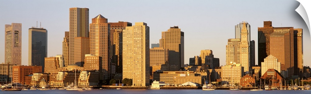 <p>Huge, panoramic photograph of the Boston skyline in the morning sun.</p>