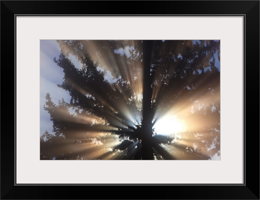 <p>Sunrise through the morning fog, Willamette valley, Oregon, united states of America.</p>