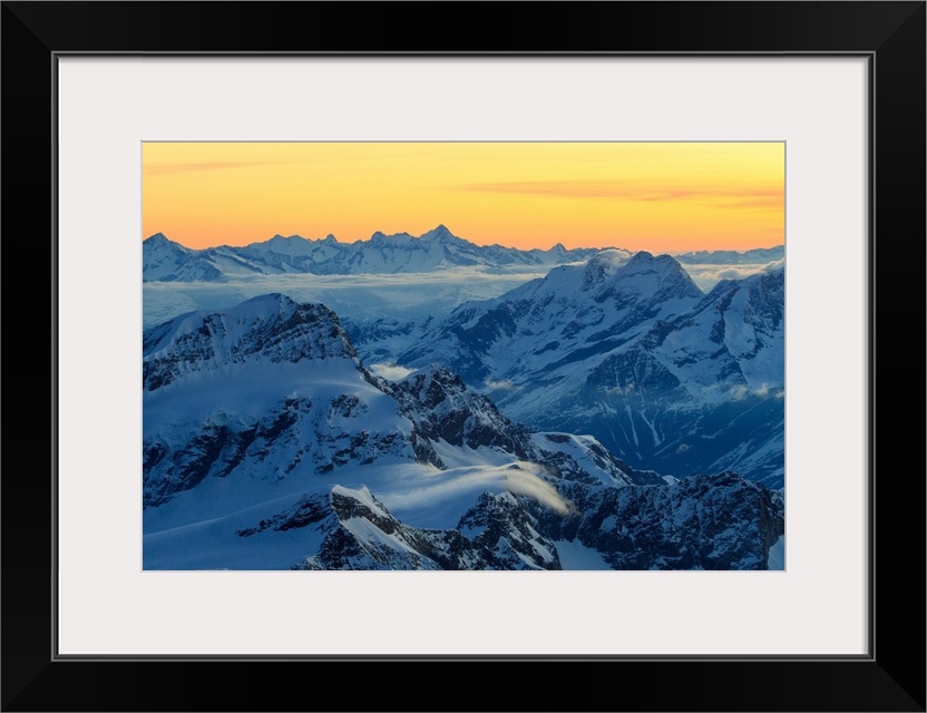 <p>Sunrise view over the Alps from the top of Monte Rosa, Aosta Valley, Italy.</p>