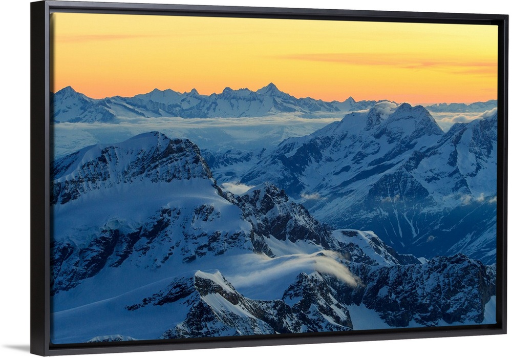 <p>Sunrise view over the Alps from the top of Monte Rosa, Aosta Valley, Italy.</p>