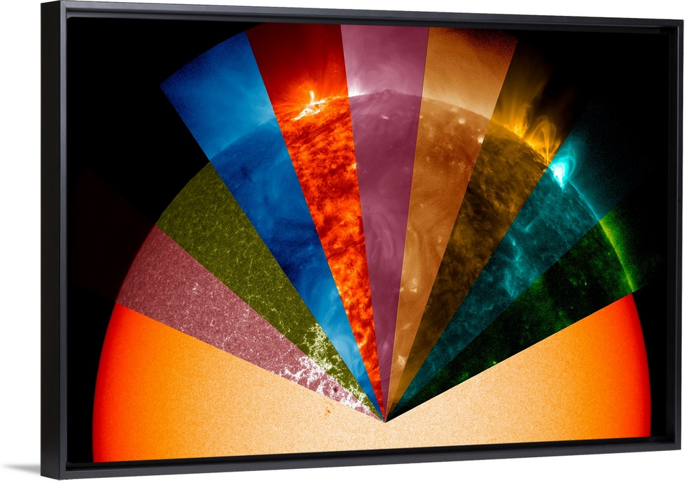 <p>Sun's surface at different wavelengths. Computer illustration showing what the Sun's surface and atmosphere look like when viewed using different wavelengths of light. Image created using data from NASA's Solar Dynamics Observatory. Courtesy of NASA GODDARD SPACE FLIGHT CENTER.</p>