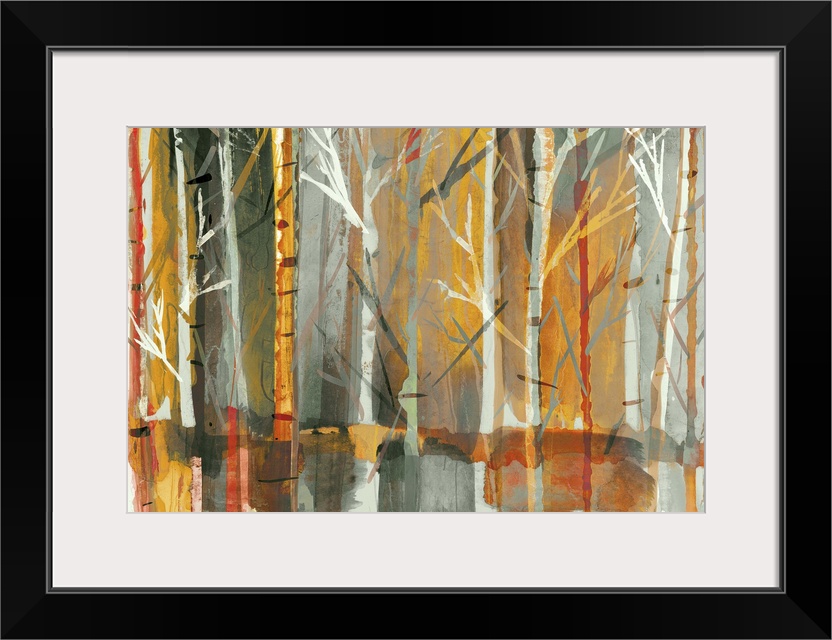 <p>Contemporary home decor artwork of a dense forest in rich warm tones.</p>