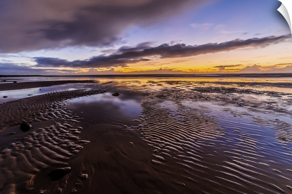 <p>Sunset across the Irish Sea and Furness Peninsula, from Sandy Gap, Walney Island, Cumbrian Coast, Cumbria, England, United Kingdom, Europe</p>