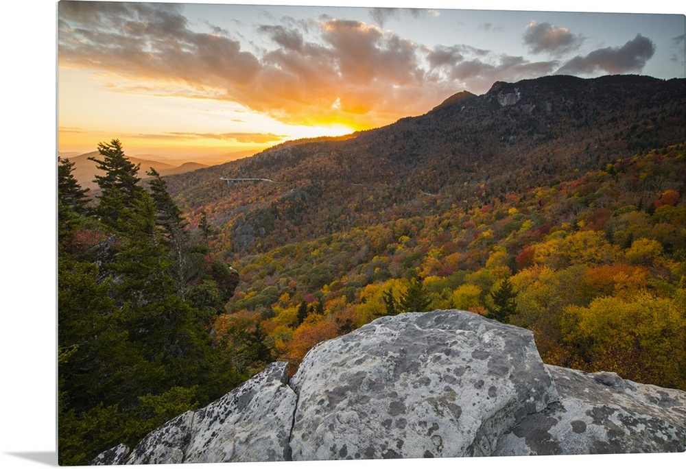 <p>Sunset and autumn color at Grandfather Mountain, located on the Blue Ridge Parkway, North Carolina, United States of America, North America</p>