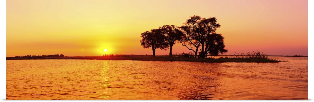 <p>Sunset and Island, Chobe River near Kasane,Africa, Botswana, Chobe National Park</p>