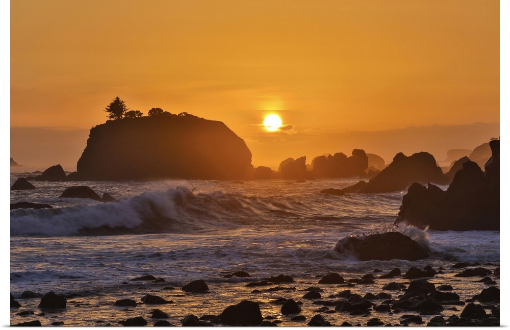 <p>Sunset and sea stacks along Northern California coastline, Crescent City</p>
