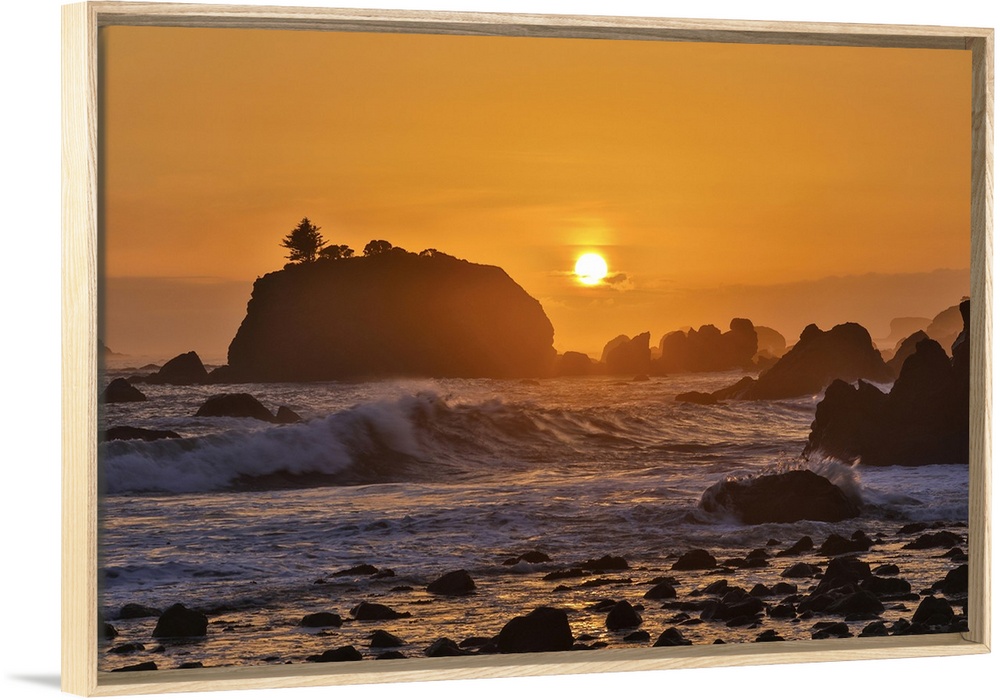 <p>Sunset and sea stacks along Northern California coastline, Crescent City</p>