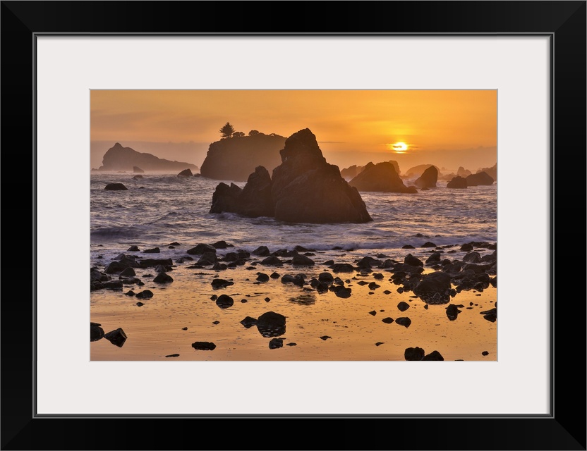 <p>Sunset and sea stacks along the Northern California coastline, Crescent City</p>