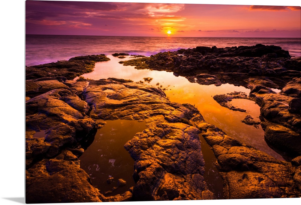 <p>Sunset and tide pool above the Pacific, Kailua-Kona, Hawaii USA</p>