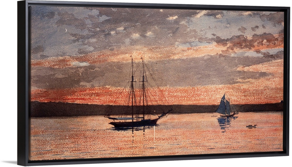 Art Classic Art Modern Art Realism Rivers, Lakes and Oceans Winslow Homer Seascapes Sunset Painting Transportation Boat