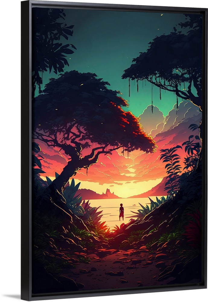 Anime Art Wumples Art Decorative Art Fantasy Graphic Art Beaches Sunset Trees