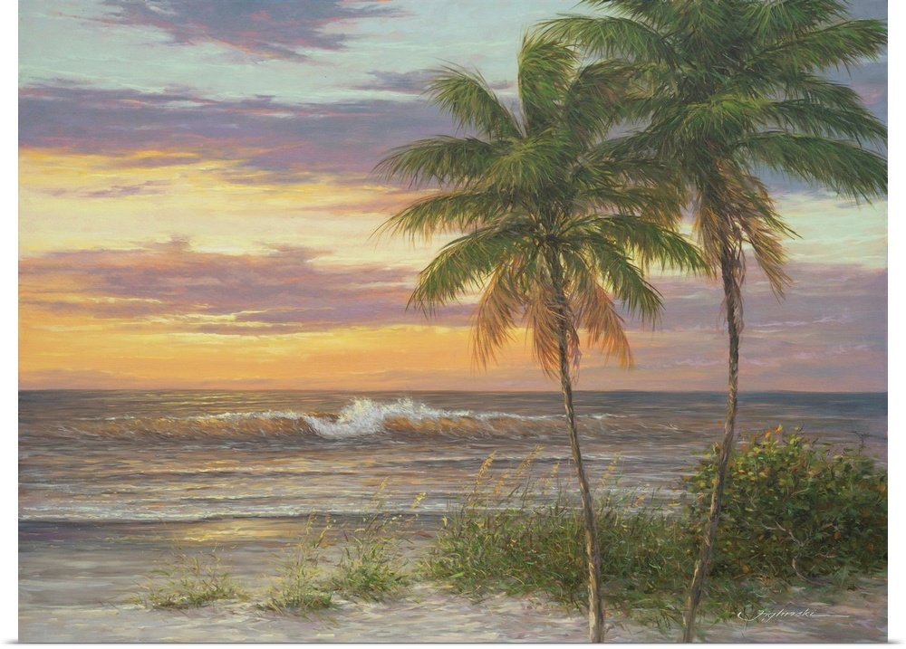 Art Contemporary Art Martin Figlinski Landscapes Beaches Beach Sunsets Seascapes Trees Palm Painting