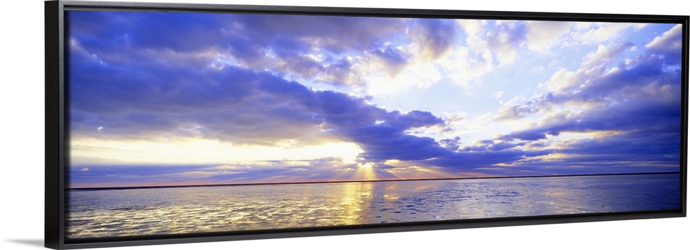 <p>Panoramic photo print of a sunset over an ocean.</p>