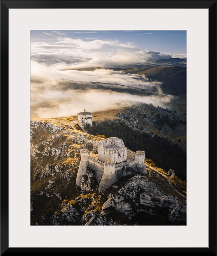 <p>Sunset in Rocca Calascio, an ancient building on the top of a mountain, Gran Sasso National Park, L'Aquila province, Abruzzo, Italy.</p>