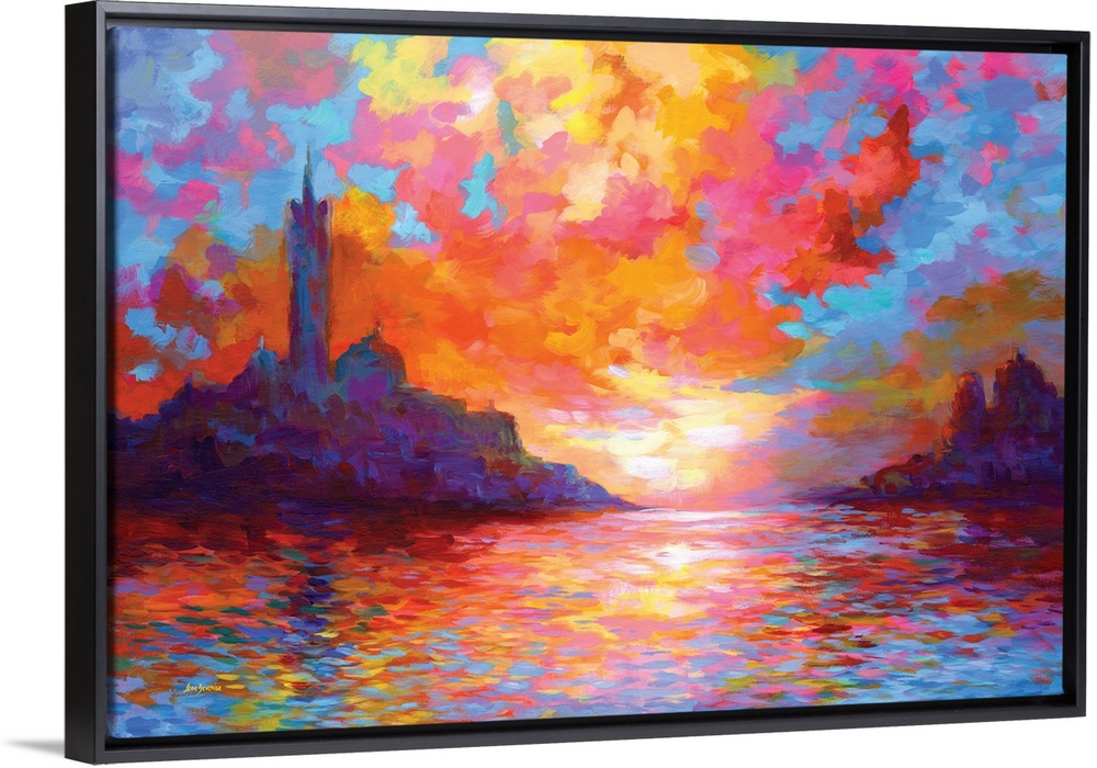 Art Maximalism Cityscapes Contemporary Art Leon Devenice Seascapes Sunset Lake and Ocean Sunsets Multicolor Wall Art Painting Europe Italy Venice