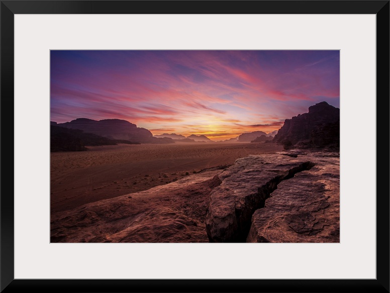 <p>Panorama of a sunset in Wadi rum desert, Jordan.</p>