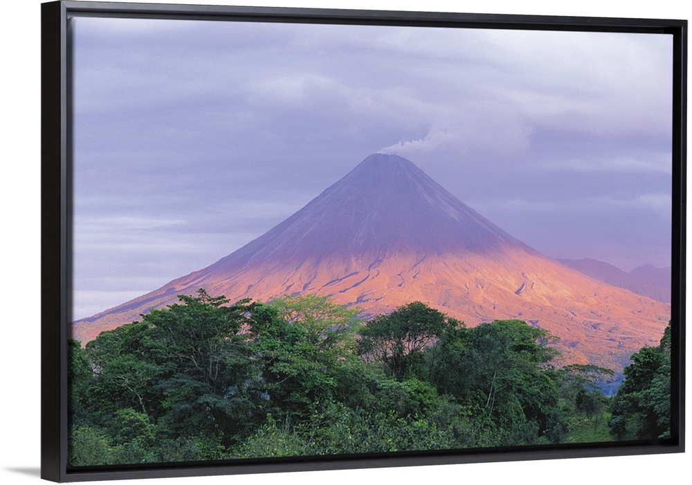 <p>Sunset light peers through the clouds to illuminate the flanks of Arenal Volcano (1,670m/5,479ft), Arenal Volcano National Park, Alajuela Province, Costa Rica.</p>