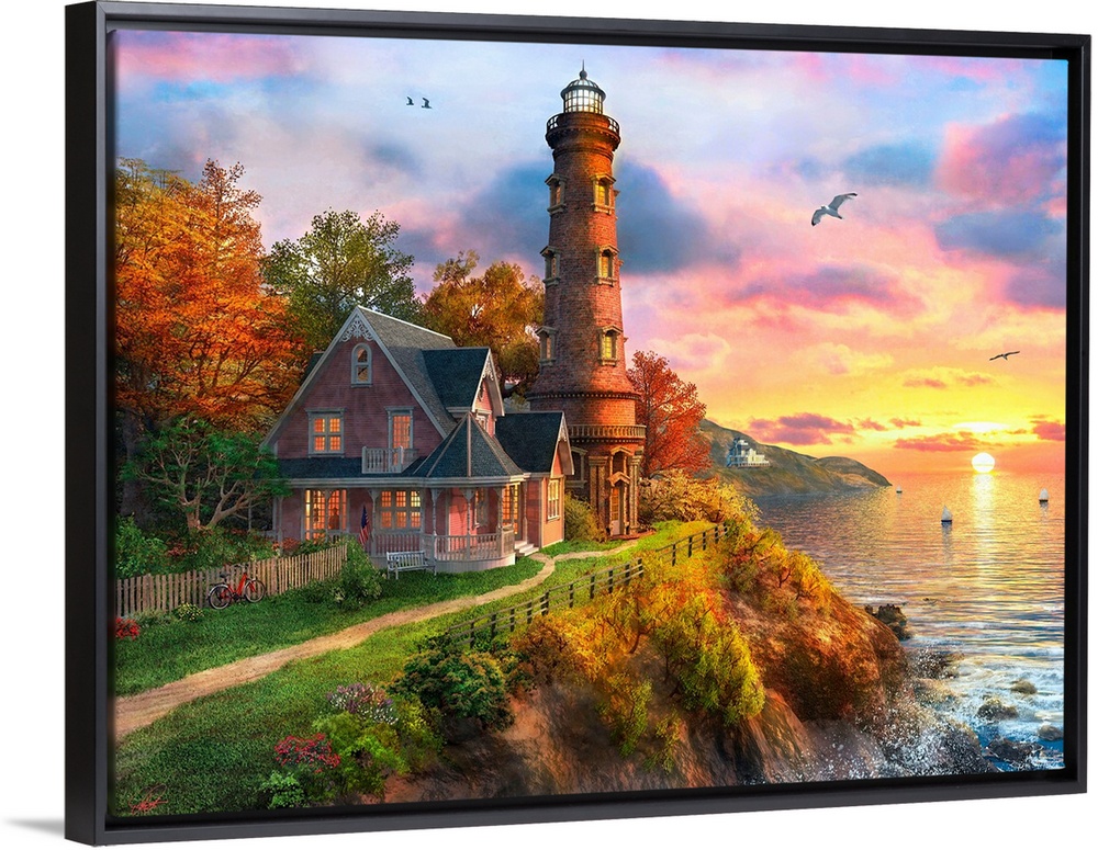 Architecture Houses Art Dominic Davison Graphic Art Lighthouse Sunset