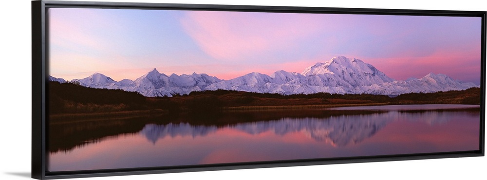 <p>Sunset, Mount McKinley in Denali National Park, Alaska reflected in Reflection Pond.</p>