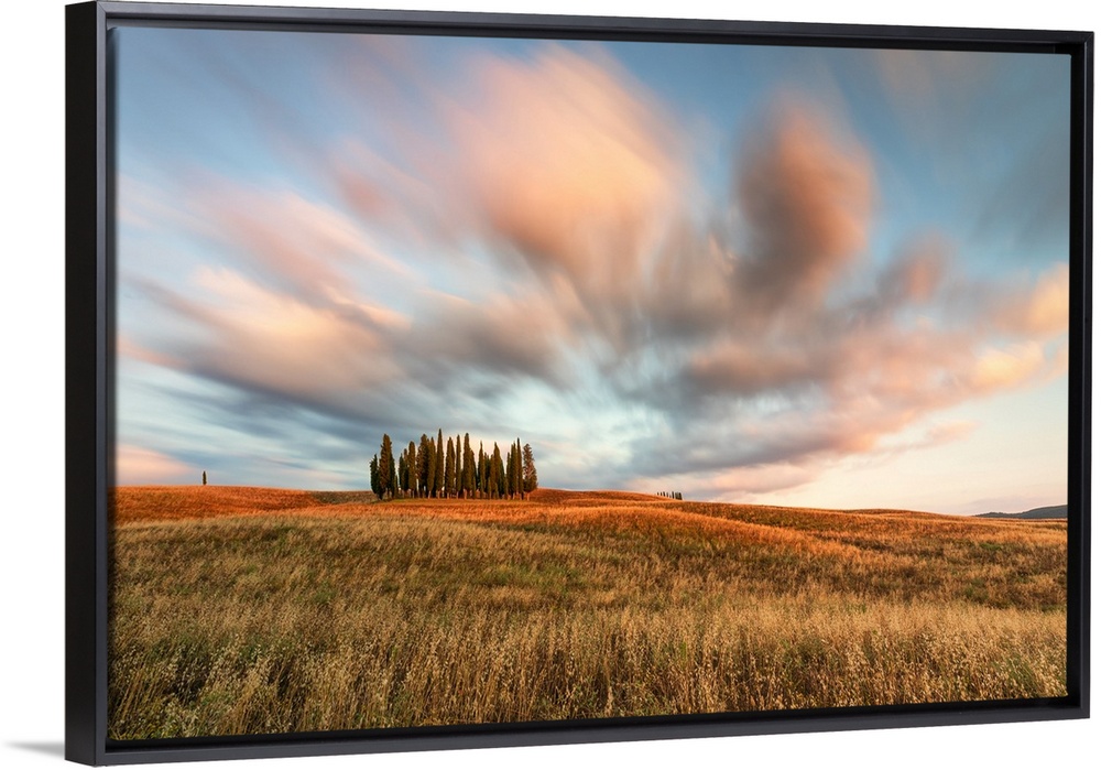 <p>A long exposure to capture the sunset near the iconic Cypresses of San Quirico d'Orcia, Siena province, Tuscany, Italy</p>