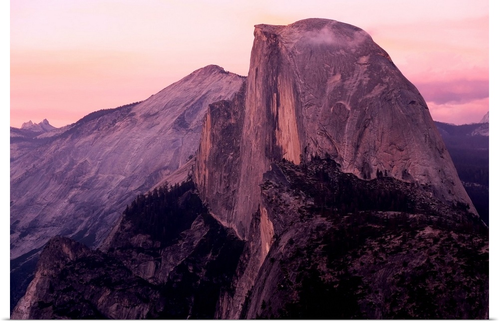 <p>Sunset on Half Dome as seen from Glacier Point, Yosemite National Park. California, United States of America.</p>