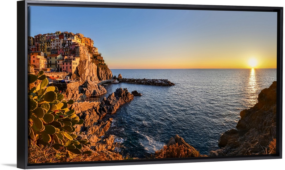 <p>Sunset on Manarola, municipality of Riomaggiore, National Park of Cinque Terre, La Spezia province, Liguria district, Italy, Europe</p>