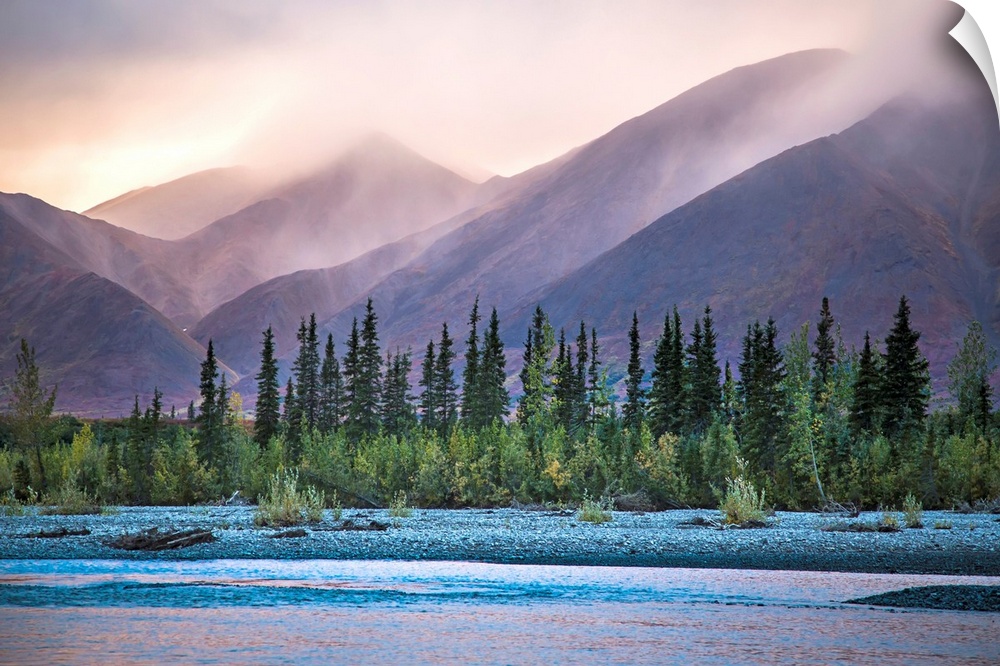 <p>Rain and snow squalls race over the mountains during sunset on the Kelly River, in the western Brooks Range of Noatak National Preserve, Alaska, USA.</p>