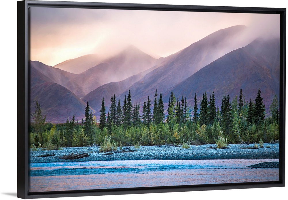 <p>Rain and snow squalls race over the mountains during sunset on the Kelly River, in the western Brooks Range of Noatak National Preserve, Alaska, USA.</p>