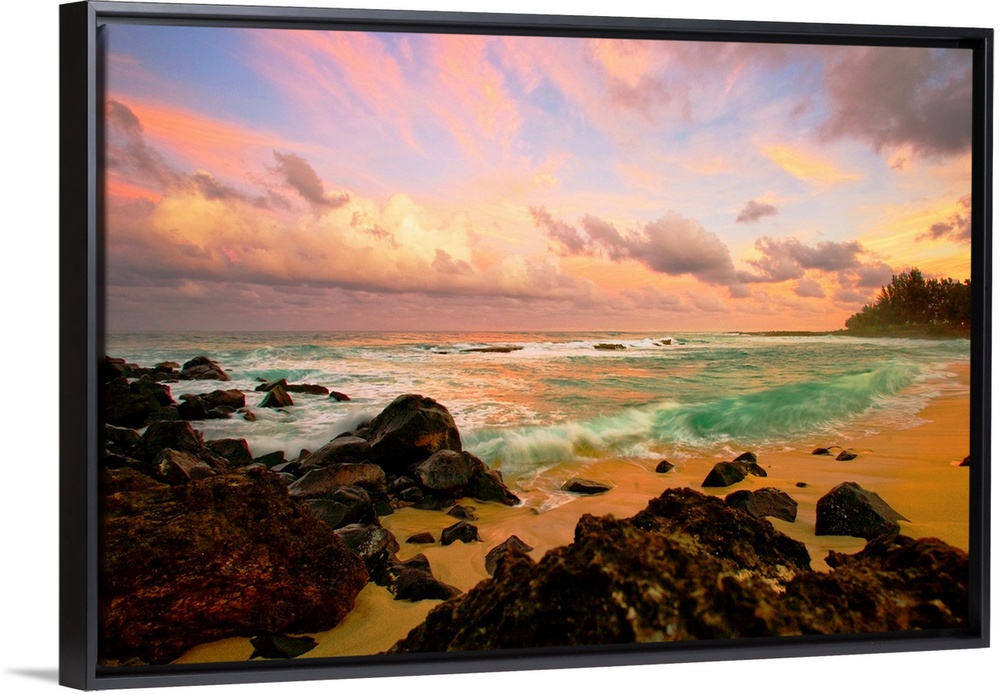 Elevate your home or office décor by adding a modern floating frame to your canvas art print. Finishing your gallery wrapped canvas with a floating frame enhances the beauty and detail of our giclée art prints. Handcrafted from solid wood, and available in multiple finish colors, there’s sure to be a frame to accent your canvas art print.