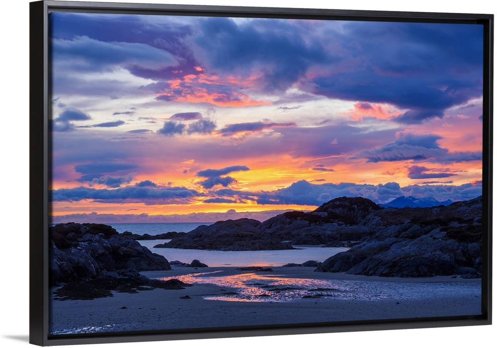 <p>Sunset over Ardtoe Bay, Ardnamurchan Peninsula, Lochaber, Highlands, Scotland, United Kingdom, Europe</p>