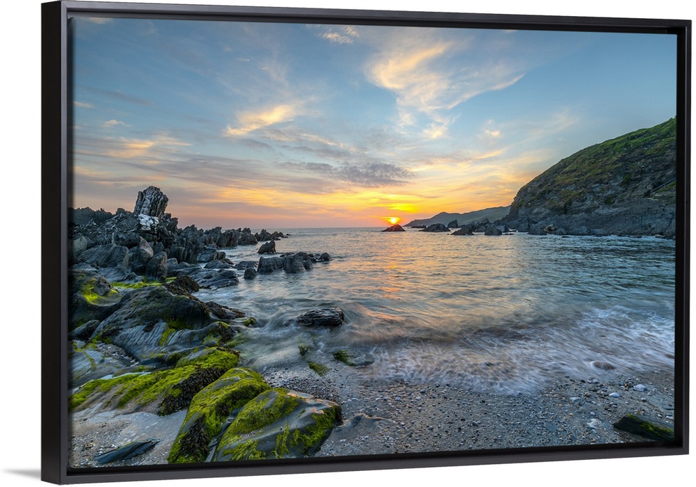 <p>Sunset over Atlantic, Combesgate Beach, Woolacombe, Devon, England, United Kingdom, Europe</p>