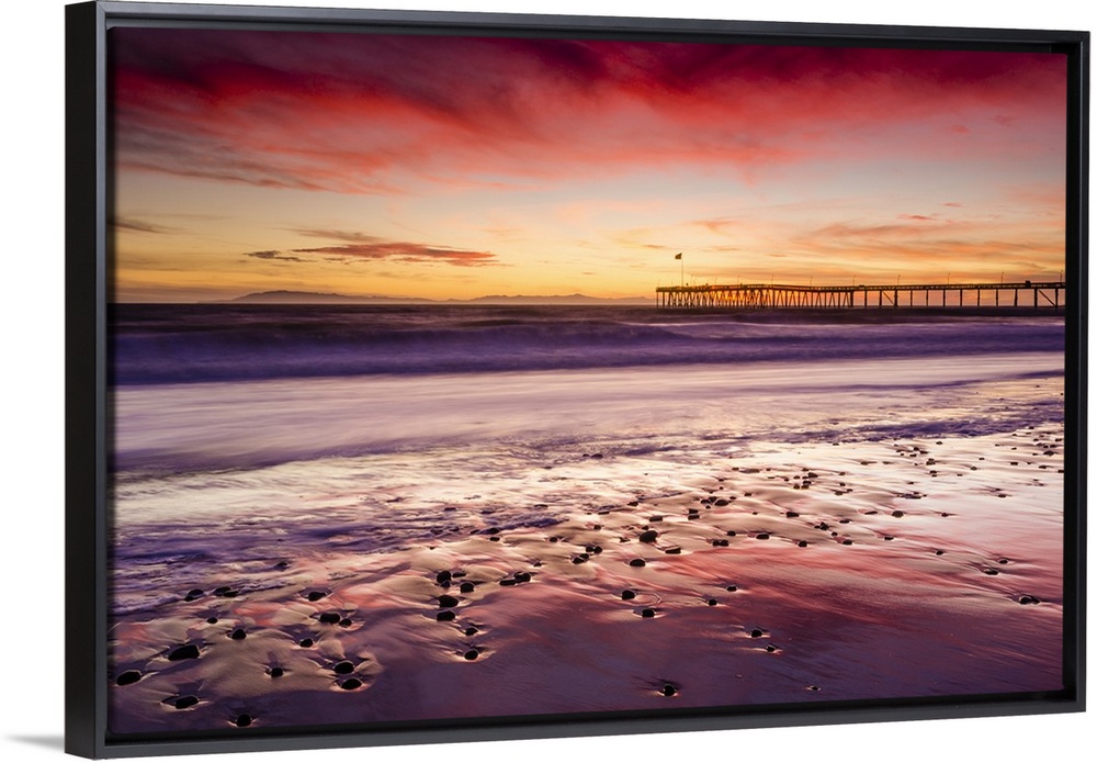 <p>Sunset over the Channel Islands and Ventura Pier from San Buenaventura State Beach, Ventura, California</p>