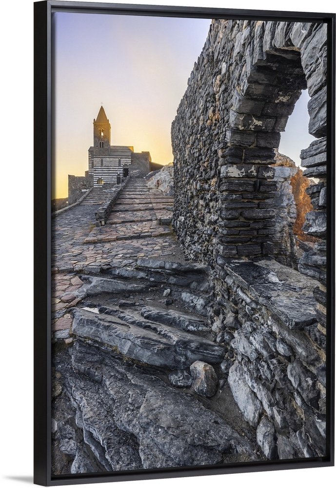 <p>Sunset over Chiesa di San Pietro, Portovenere, La Spezia, Liguria, Italy, Southern Europe</p>
