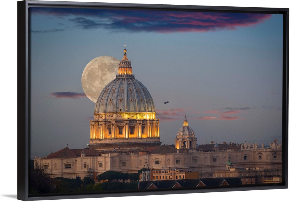 <p>Fine art photograph of the moon rising right behind St. Peter's Basilica in Rome.</p>