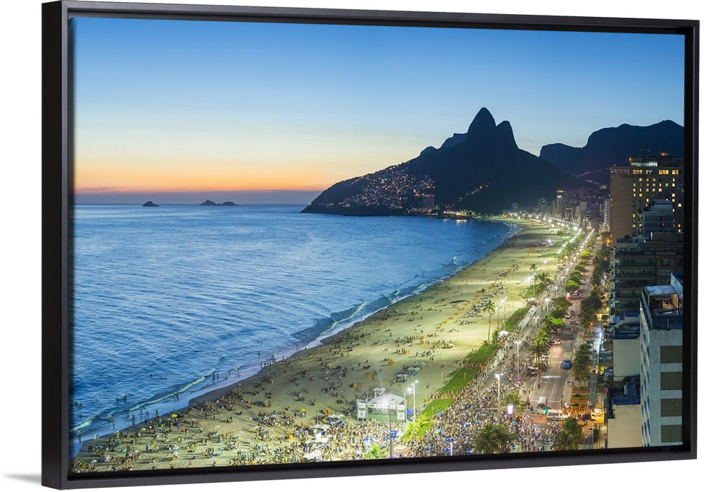 <p>Sunset over Ipanema Beach and Dois Irmaos (Two Brothers) mountain, Rio de Janeiro, Brazil, South America.</p>