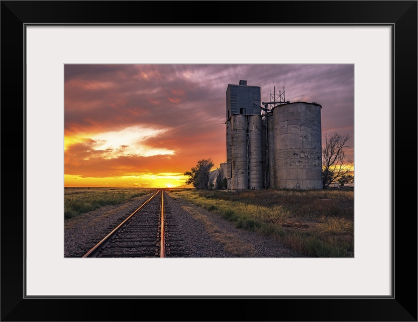 <p>Sunset shoots beautiful colors across the clouds above an old grain elevator in Kit Carson, a small town on the Colorado plains. Abandoned grain elevators dot the Great Plains, testament to the consolidation of the agricultural industry.</p>