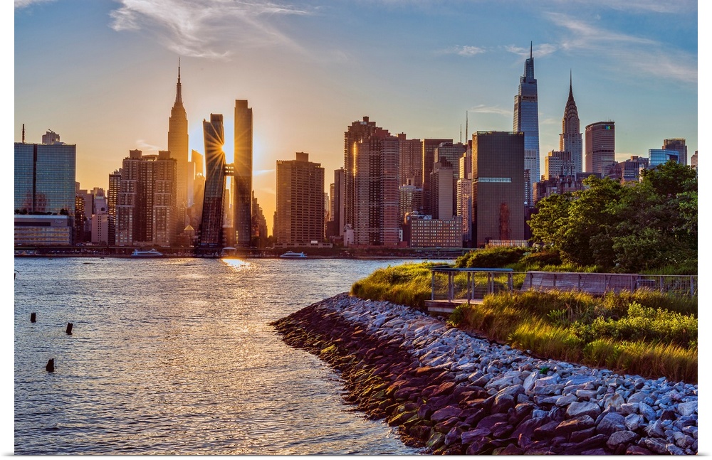 <p>Sunset over midtown manhattan viewed from hunter's point park south in Queens, NY, USA.</p>