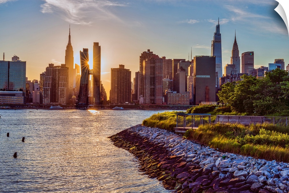 <p>Sunset over midtown manhattan viewed from hunter's point park south in Queens, NY, USA.</p>