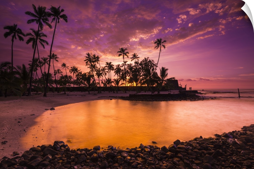 <p>Sunset over Pu'uhonua O Honaunau National Historic Park (City of Refuge), Kona Coast, Hawaii</p>