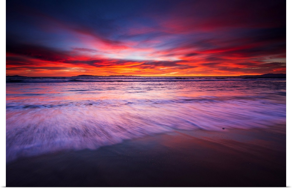 <p>Sunset over the Channel Islands from San Buenaventura State Beach, Ventura, California USA.</p>