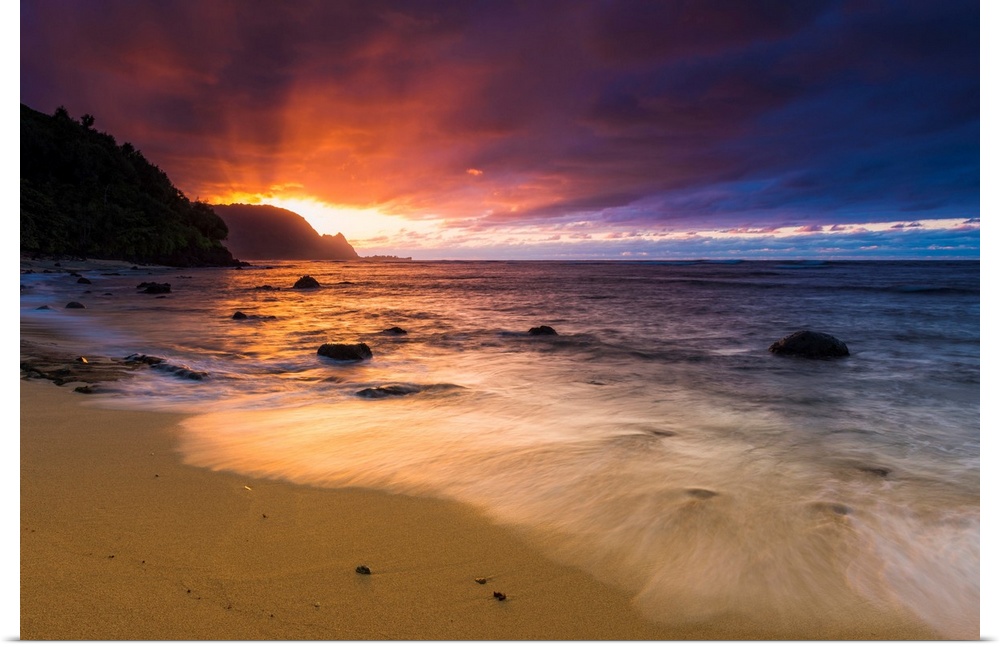 <p>Sunset over the Na Pali Coast from Hideaways Beach, Princeville, Kauai, Hawaii USA</p>