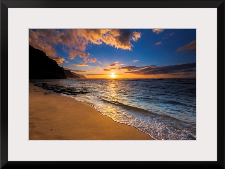 <p>Sunset over the Na Pali Coast from Ke'e Beach, Haena State Park, Kauai, Hawaii USA</p>