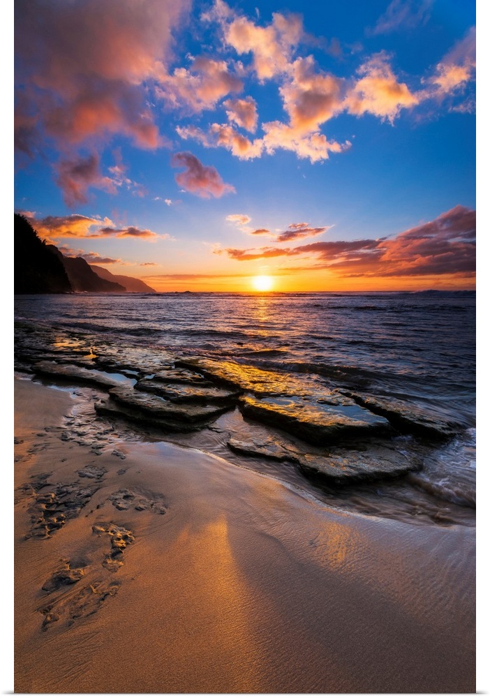 <p>Sunset over the Na Pali Coast from Ke'e Beach, Haena State Park, Kauai, Hawaii USA</p>