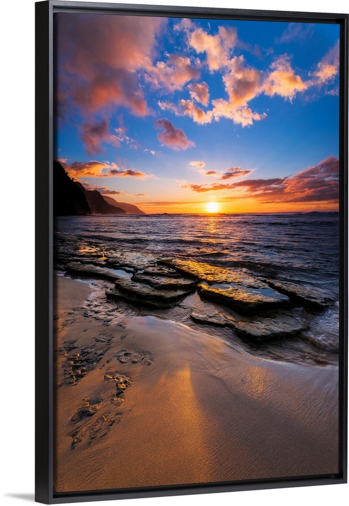 <p>Sunset over the Na Pali Coast from Ke'e Beach, Haena State Park, Kauai, Hawaii USA</p>