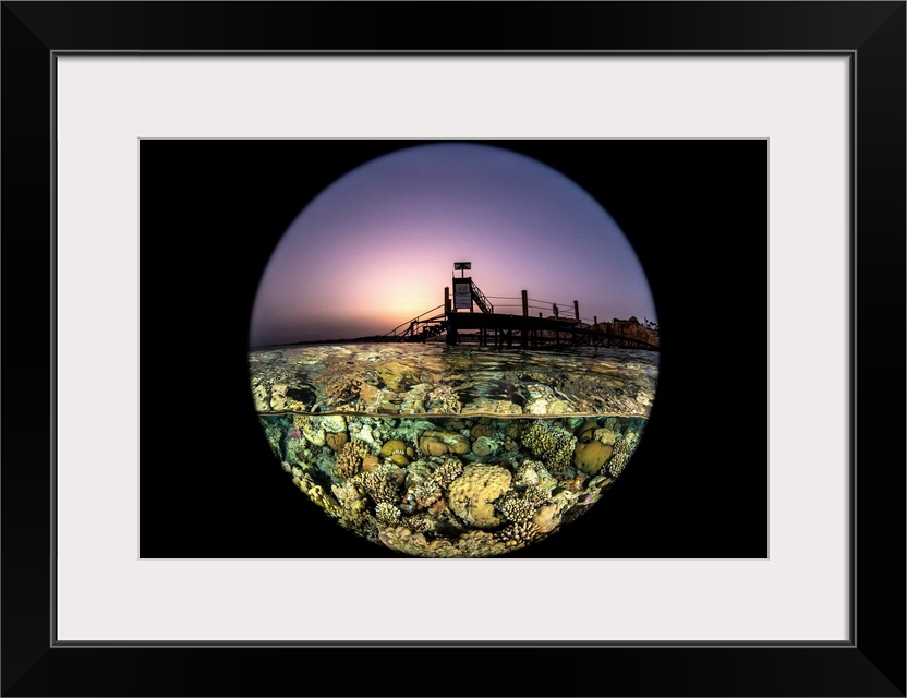 <p>Sunset over the pier and coral gardens at in the Red Sea.</p>