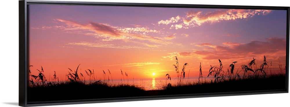 <p>This wall art is a panoramic photograph of silhouetted sea grass in front of a calm sea at the end of the day.</p>
